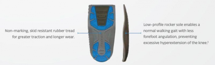 A patented grid design puts a matrix of shock-absorbing material in direct contact with the heel, providing structured cushioning that reduces heel loading and helps prevent impact related stresses
