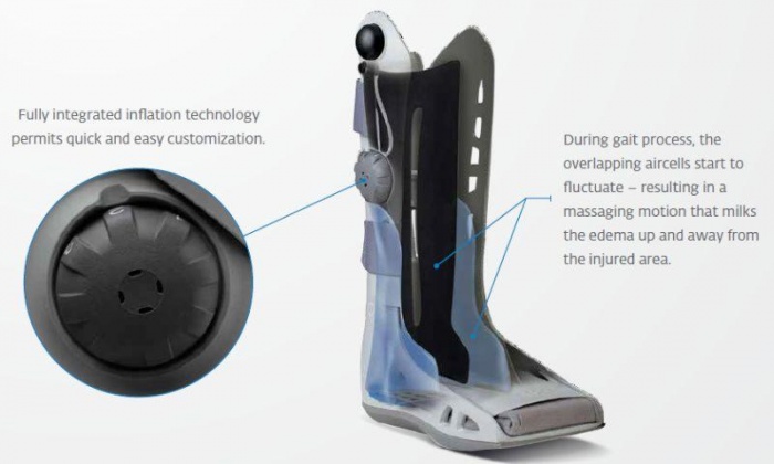 The Aircast AirSelect Standard Walker Boot has an integrated inflation system which lets patients inflate each aircell individually, to maximise comfort and minimize edema.