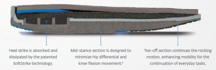 A patented grid design puts a matrix of shock-absorbing material in direct contact with the heel, providing structured cushioning that reduces heel loading and helps prevent impact related stresses